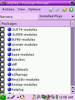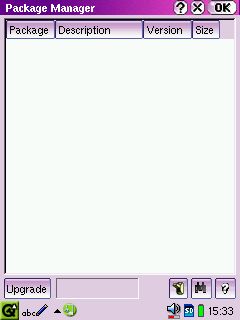 Tout commence dans l'onglet Settings. Il faut y choisir "Packages". On arrive alors sur la liste des paquets installés sur le Zaurus.