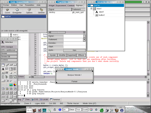 A ce stade vous avez les bases pour utiliser anjuta et glade. Il vous reste à explorer les possibilités de ces logiciels.